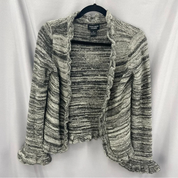 Tashia London Cashmere Open Ruffle Cardigan in Heathered Gray Size Medium