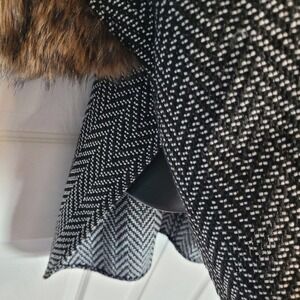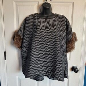 Tashon Women's Woven Chevron Faux Fur Poncho Coverup One Size Black White Hi Lo