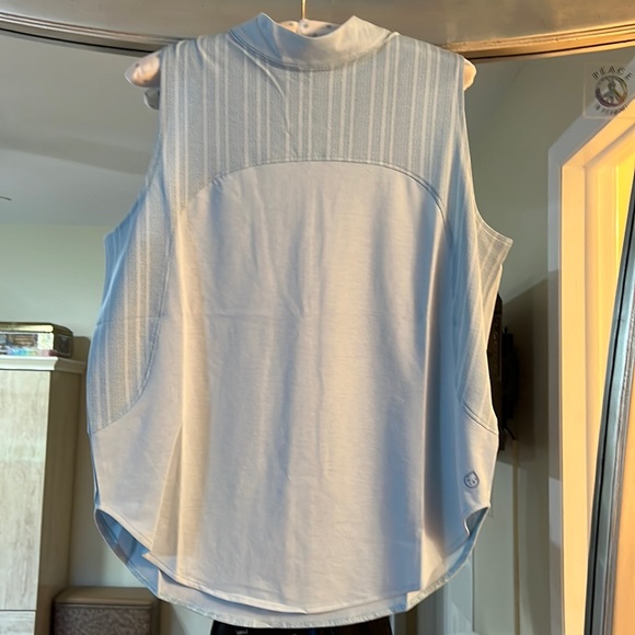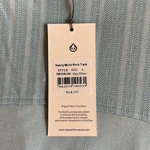 New from a smoke free home, beautiful light weight mock neck swing tank in sky blue.