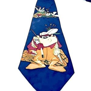 Looney Tunes Mania novelty Fishing tie featuring the Tasmanian Devil and Bugs Bunny. Bright navy blue background. No flaws, like new. 58” x 4”
