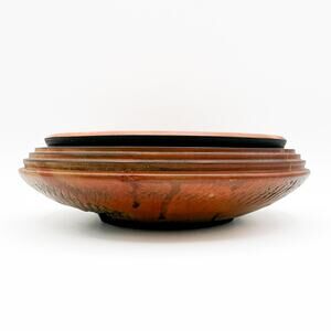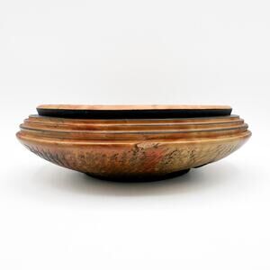 This striking bowl is all about the amazing material. The artisan seems to have chosen this unique tiered design to accentuate the unique natural birds eye features. The underside is signed and claims that the tree was likely 3000 years old.