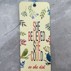 Good condition - tassel bookmark with quote “She Believed She Could So She Did”. Colors: yellow, blue, green, red, purple, and pink.