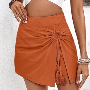 Tassel Decor Ring Linked Bow Tie Wrap Mini Asymmetrical Hem Old Money Skort