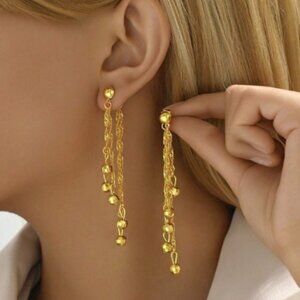 1pair Fashionable European & American Style Tassel Earrings, Geometric Hollow Out Design