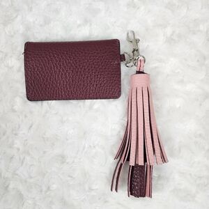 Tassel Keychain Credit Card Wallet Brown Pink
