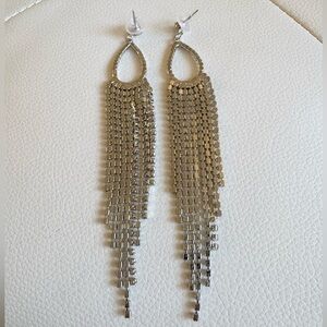 Tassel Long Chandelier Statement Earrings Silver Rhinestones bridal wedding New