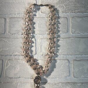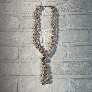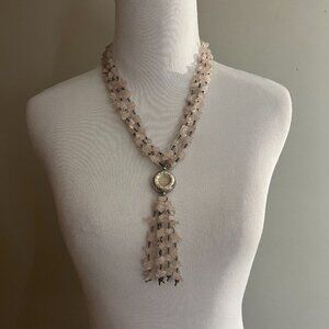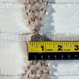 Tassel Necklace Pink Rose Quartz Silver Beaded Multi Strand Statement Fashion