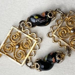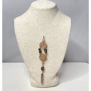 Tassel Pendant Gold Tone Open Work And Black Painted Beads