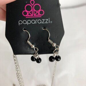 Tassel Takeover Silver Rhinestone Black Beaded 32" Long Necklace With Earrings