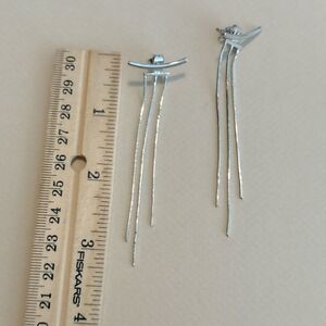 Tassel drop minimalist stud earrings in silver tone hardware