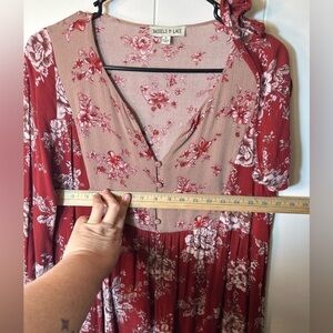 Tassels N Lace Burgundy Boho Floral Dress Size Small