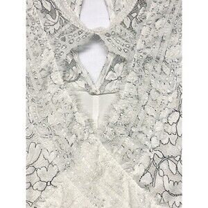 Tassels N Lace Off White / Black Gauzy Dress w Long Lace Sleeves Size M Keyhole Back