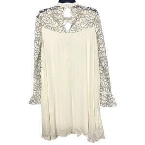 Tassels N Lace Off White Gauzy Dress w Long Lace Sleeves Size M Keyhole Back