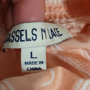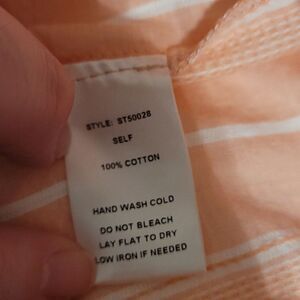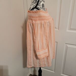 Beautiful top. Off shoulder. 3/4 sleeve. All cotton material. Lightweight and flowy. Tag says size large. small coloration on botton. in pic