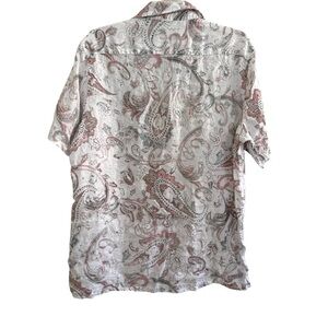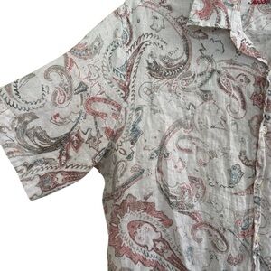 Tasso Elba 100% Linen Shirt Button Up Short Sleeve Pastel Paisley L