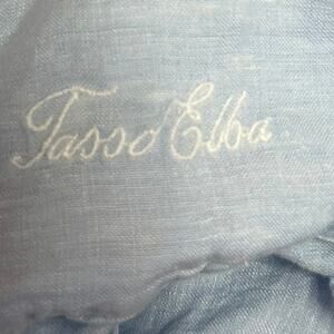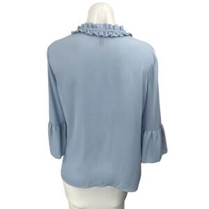 Tasso Elba 100% Linen Women's Blue Bell Sleeve Ruffle Tie Neck Blouse Top Size M