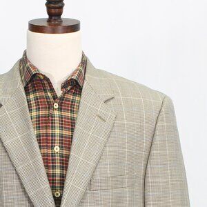 Tasso Elba 46L Beige Blazer Sport Coat Jacket 2-Button Check T925