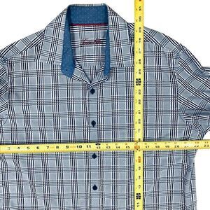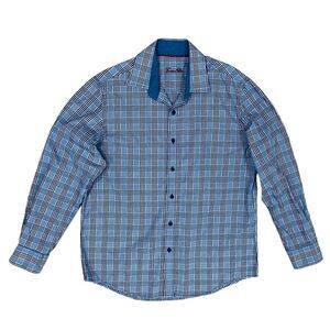 Tasso Elba Blue Plaid Buttons Down Long Sleeve Flip Cuff Sz M (15-151/2) Shirt