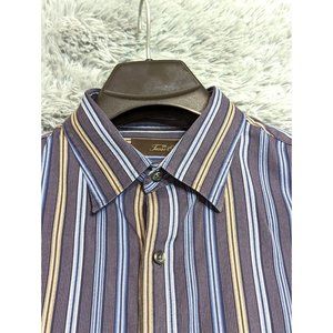 Tasso Elba Button Down Shirt Adult Size Large L Blue Striped Cotton Mens Up