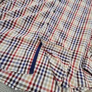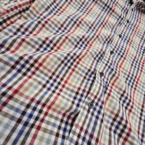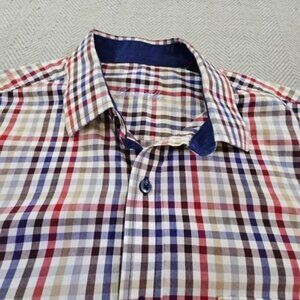 For sale, this Tasso Elba Men's Button-Up Shirt, perfect for both casual and workwear settings. The shirt features a classic checkered pattern in a tasteful multicolor design, complementing a variety of occasions and events.