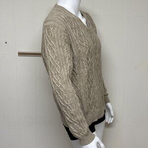 Tasso Elba Cable Knit Sweater Mens L Wheat 100% Cotton V Neck Heavy Pullover