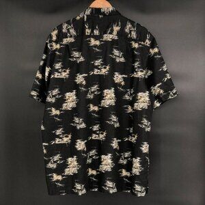Tasso Elba Island Men's Button Up Tropical Shirt XXL Black Linen Blend Vacation