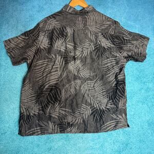Tasso Elba Island Men's Hawaiian Shirt XL Gray Palm Tree Print Silk Linen Blend