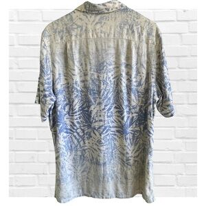 Tasso Elba Island Silk Linen Camp Shirt Hawaiian Blue Resortwear Cuban Collar