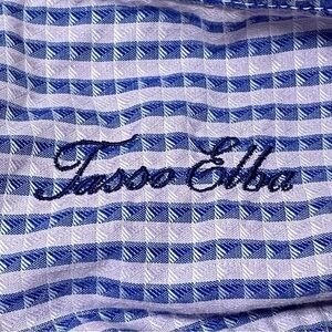 Tasso Elba Lavender Blue Striped Button Down Shirt Size Large Cotton Casual