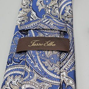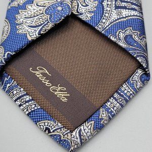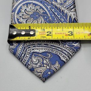 Tasso Elba Men's 100% Silk Tie Paisley Navy & Silver Textured ~ 60 X 3 #E