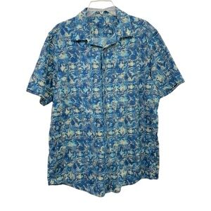 Tasso Elba Men's BLUE Short Sleeve Cotton Print Shirt Size L