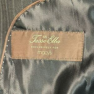 Tasso Elba Mens Black Striped Sport Coat Suit Jacket Blazer Size S42 - 90% Wool. Made exclusively for Macy's.