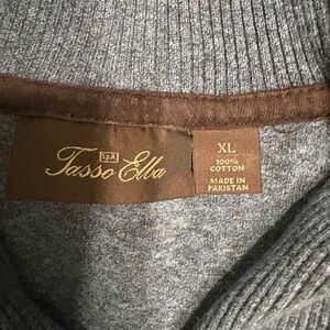 Elegant blue turtleneck sweater by Tasso Elba. Features a cozy design with a stylish button detail.