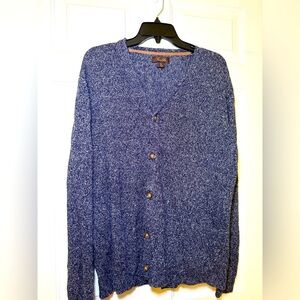 Tasso Elba Men’s Blue White Heather Cardigan Sweater Size XL 100% Linen