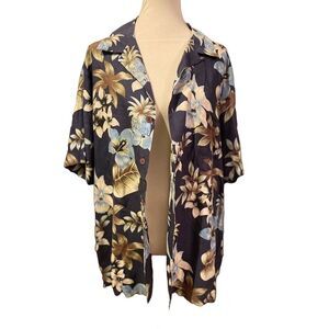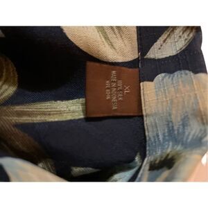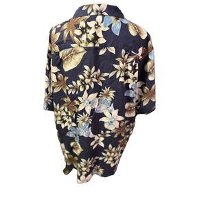 Tasso Elba Men's Button Down Shirt Collared Floral 100% Silk Navy Blue XL