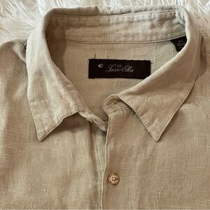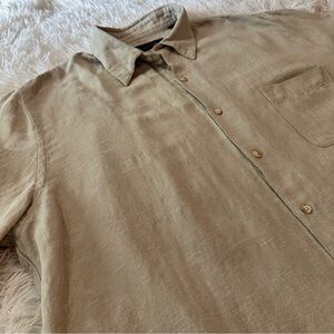 Tasso Elba Men's Casual Linen Blend Beige Button Down Shirt