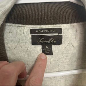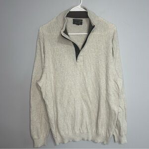 Tasso Elba Men's Cream Ivory Pullover Quarter Zip-Up Cotton Sweater Size XL