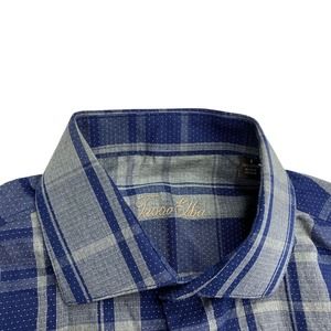 Tasso Elba Mens Dot Plaid Dobby Check Button Down Shirt Tallon Blue S