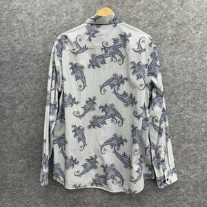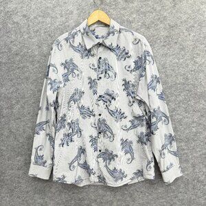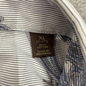 Tasso Elba Men's Dress Shirt, Button-Up, 100% Cotton, Blue Floral, XL, 17-17.5