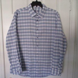 Tasso Elba Mens L/S Blue Fancy Cotton Casual Shirt. Size 18/34 or XXL. Armpit-to-armpit 27", Length 32.5". 100% Cotton in Fancy Blue Check. New w/o Tags, suitable for gifting.