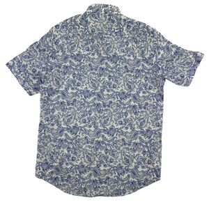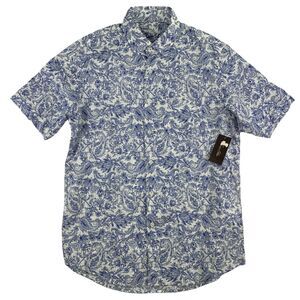 Tasso Elba Mens Linares Printed Short Sleeve Button Down Shirt Blue S