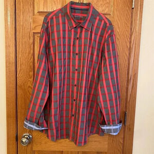 Tasso Elba Men's Long Sleeve Red Gray Checkered Button-Up Shirt XXL 18-18.5