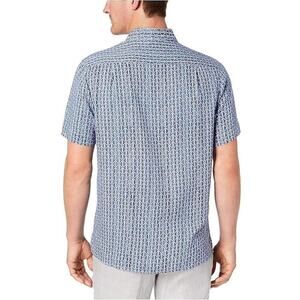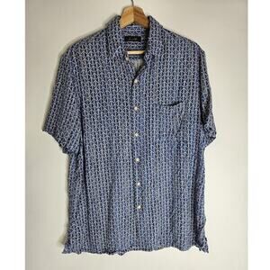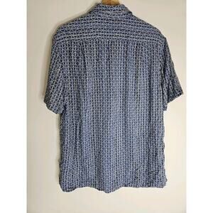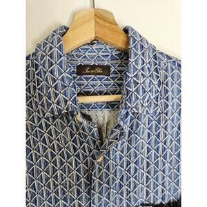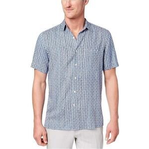 Tasso Elba Men's Shirt Size L Blue Silk Blend Geometric Short Sleeve Designer