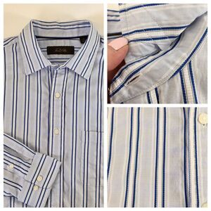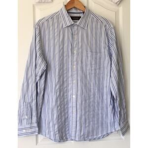 Tasso Elba Men's Size Large Blue/White Striped Long Sleeved button up Shirt