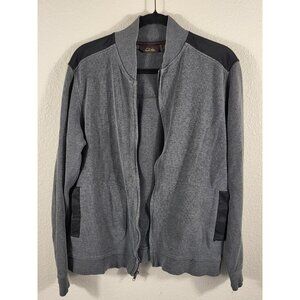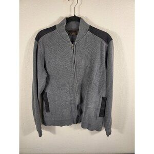 Tasso Elba Mens Sweater Jacket XL Gray Full Zip Long Sleeve Cotton Mock Neck