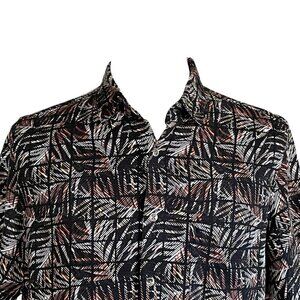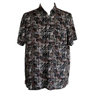 Tasso Elba Mens Sz XL Tropical Palm Leaf Print Shirt Brown Black Silk Hawaiian