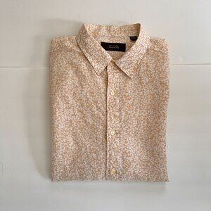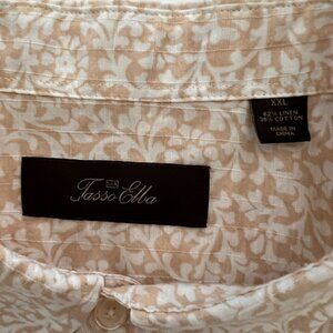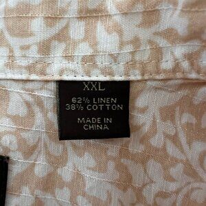 Tasso Elba Mens XXL Short Sleeve Beige Floral Linen Cotton Blend Shirt B…