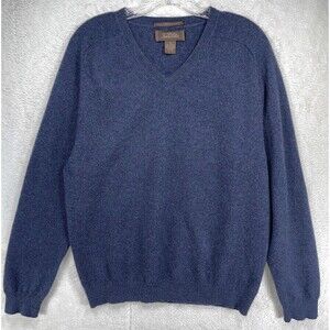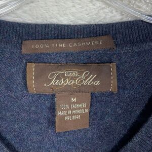 Tasso Elba Blue Navy Sweater Mens Medium Fine Cashmere V Neck Preppy Academia