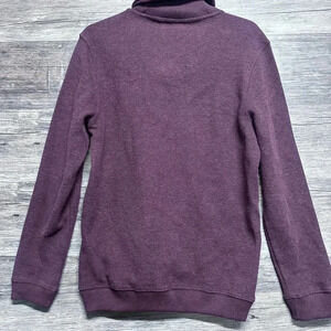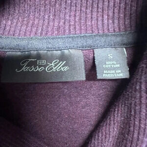 This Tasso Elba sweater features a rich deep purple color and a stylish turtleneck design that creates a soft draped look around the neck. It has long sleeves and a relaxed comfortable fit, making it perfect for layering or wearing on its own.