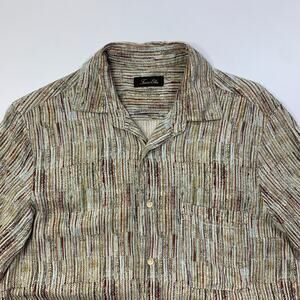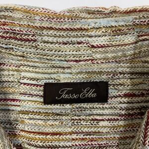 Tasso Elba Shirt Men M Medium Multi Island Print Striped Short Sleeve Silk Blend